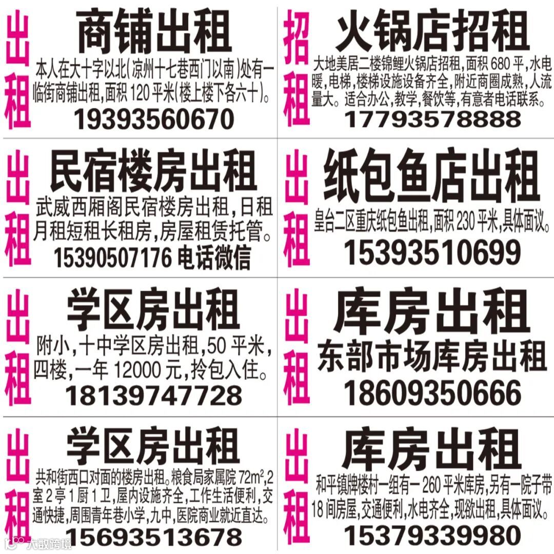 武威红柳广告和武威视觉传媒有限公司倾力打造武威本地网上生活平台,给您更好的本地资讯。招聘、求职、出租、转让、二手交易等便民信息查找、发布,商家优惠,吃喝玩乐购全都有。