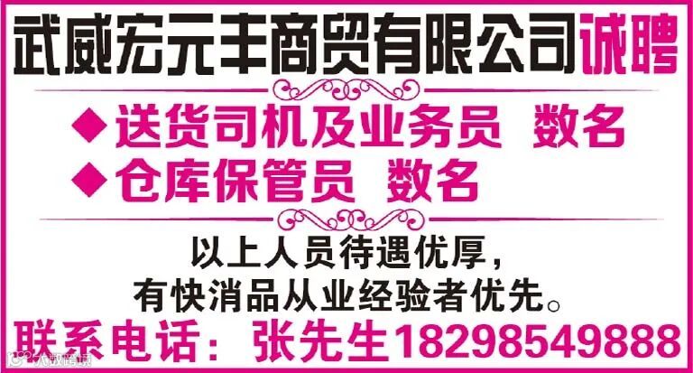 武威红柳广告和武威视觉传媒有限公司倾力打造武威本地网上生活平台,给您更好的本地资讯。招聘、求职、出租、转让、二手交易等便民信息查找、发布,商家优惠,吃喝玩乐购全都有。