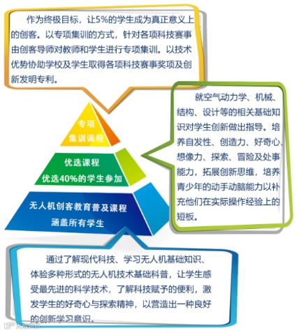 公司与北京航空航天大学无人机研究所联合成立研究生实训基地,依托北京航空航天大学无人机研究所的技术与人才优势,将无人机技术转化研发成面对不同人群的专业无人机教育课程体系,并面向6-18岁中小学生开展无人机创客教育课程。