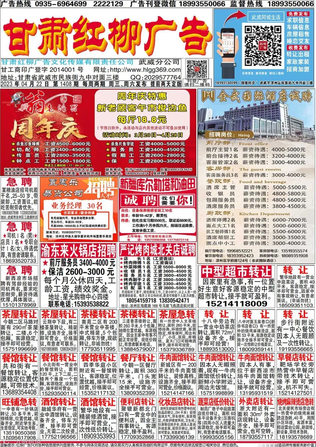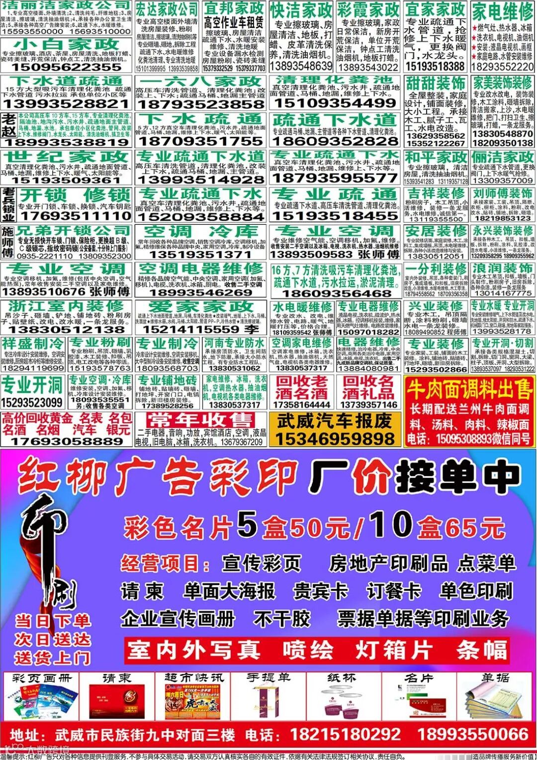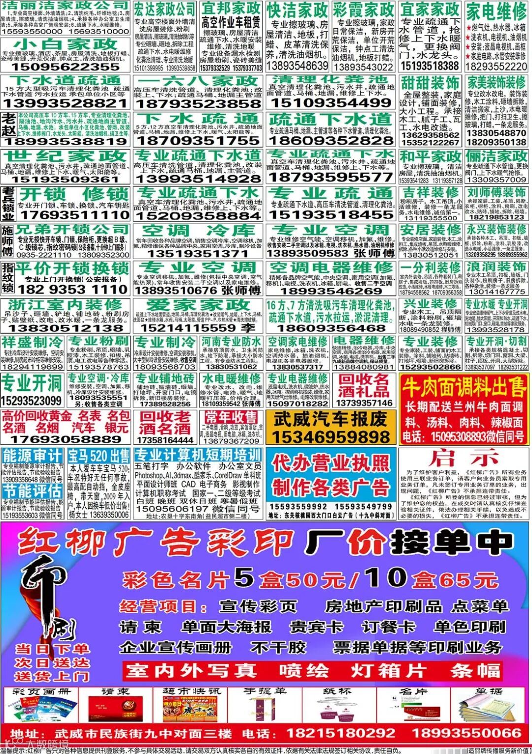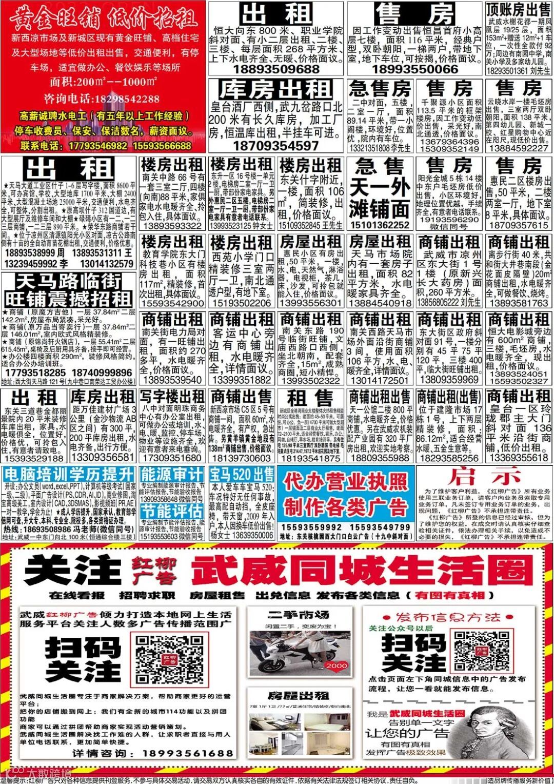 武威红柳广告和武威视觉传媒有限公司倾力打造武威本地网上生活平台,给您更好的本地资讯。招聘、求职、出租、转让、二手交易等便民信息查找、发布,商家优惠,吃喝玩乐购全都有。
