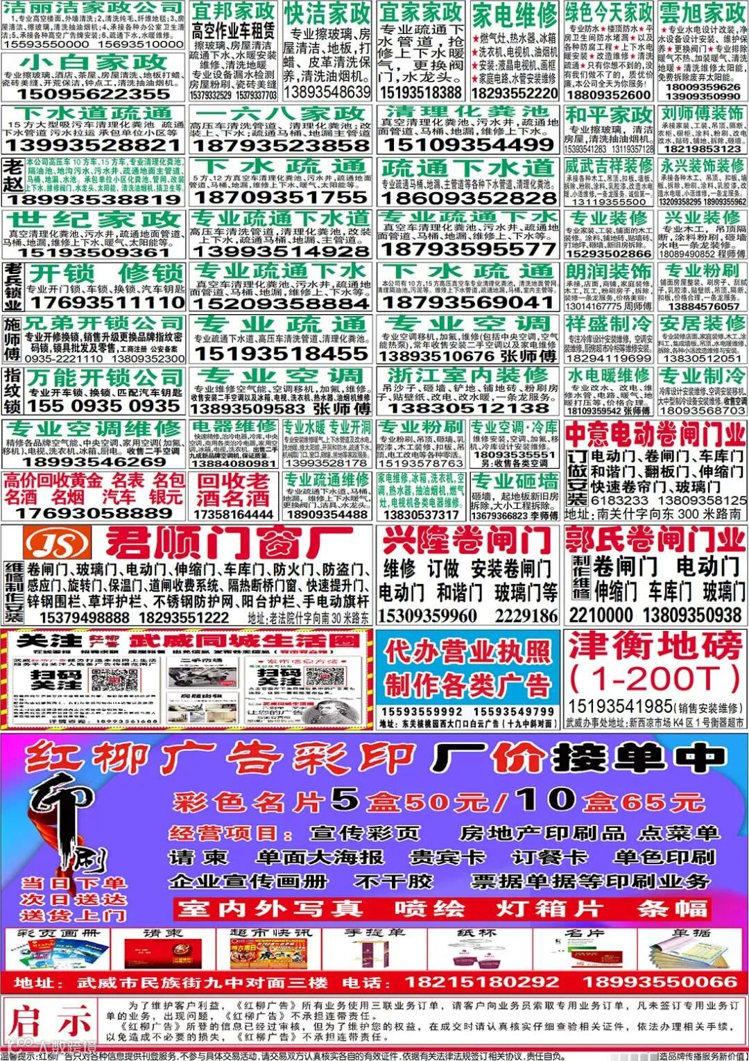 武威红柳广告和武威视觉传媒有限公司倾力打造武威本地网上生活平台,给您更好的本地资讯。招聘、求职、出租、转让、二手交易等便民信息查找、发布,商家优惠,吃喝玩乐购全都有。