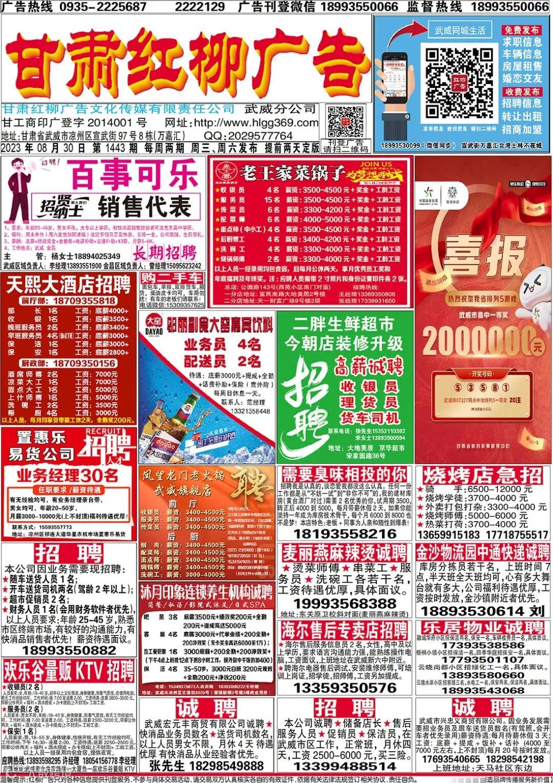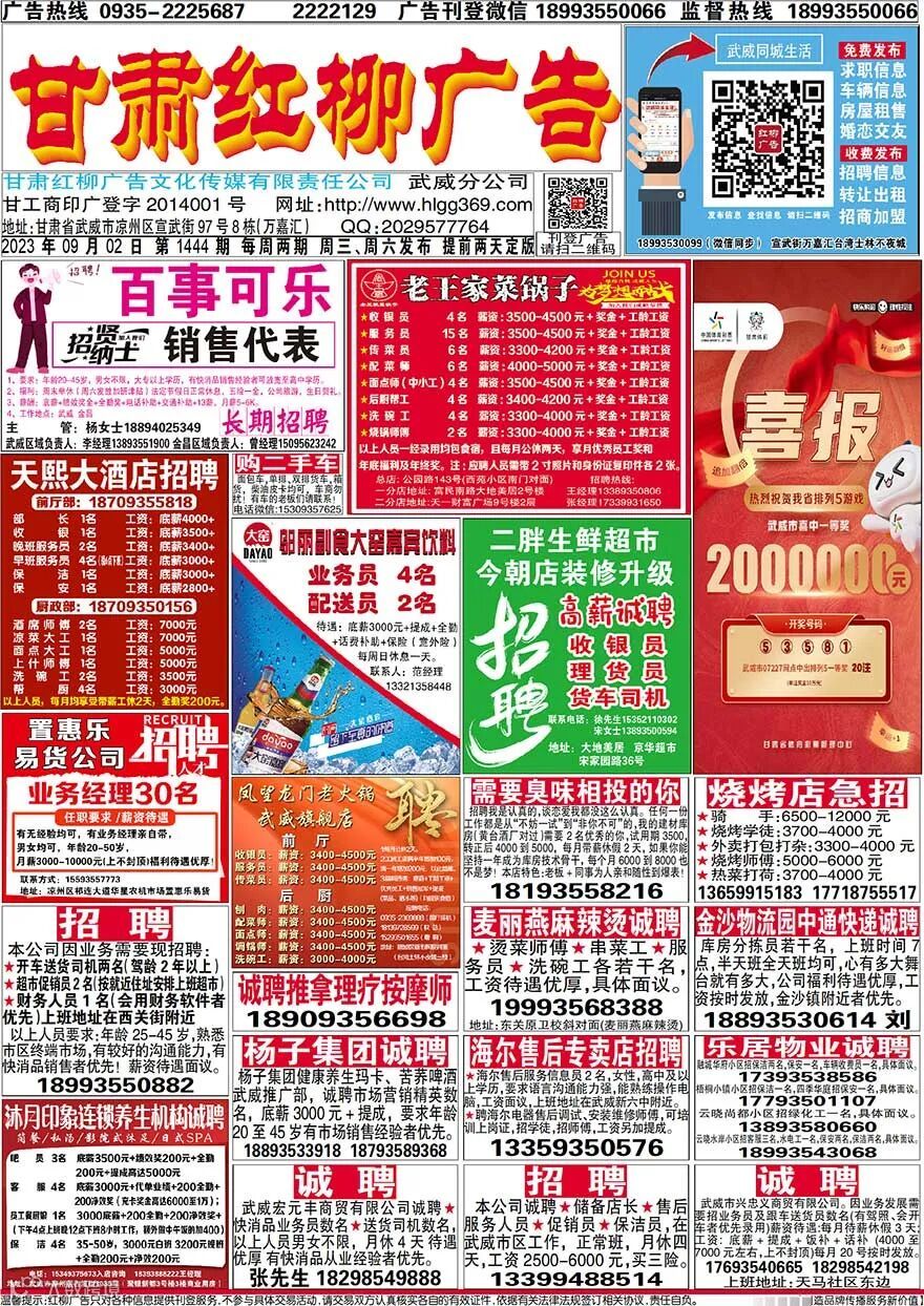 红柳广告DM报纸一周信息速递(1443期 1444期)2023年9月2日
