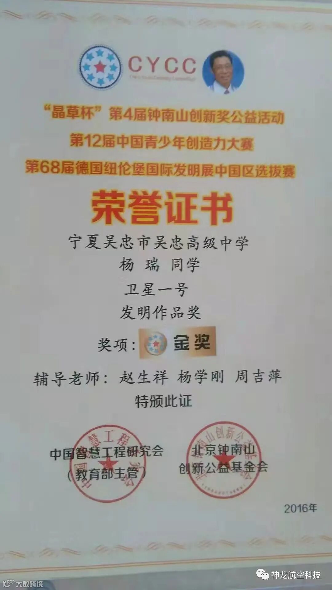都奔波在外省参加各类比赛。在高二的时候 ,由于某一天在学校看见了一架多旋翼飞行器在天空上徘徊,自己又想起了初中时候的航模梦,于是在自己零花钱充裕的情况下在淘宝上购买了一些电子设备,打算开始制作属于自己的第一架飞行器,其制作过程比较坎坷曲折,由于自己的理论知识不足,制作过程一直处于停滞不前的状态。经过一学期的学习改进,最后试飞成功。在理科学习的我对化学物质特性有了一定了解,从而萌生了一个特别的想法,既然现实中战斗机能发射导弹。那我刚试飞成功的无人飞行器能不能发射导弹呢。通过这个想法。我想到了小型固体燃料火箭,为了研究。我从网上搜索相关资料,有不明白的地方我就通过解剖航天模型发动机来研究,最后通过不断的失败,最后通过自己所配比的化学燃料成功的将自己做的一个火箭模型发射升空”以上内容是我们对杨瑞同学进行专访时杨瑞同学对自己年少时进行的回忆。杨瑞同学虽然在简单阐述年少时的作为,其实据我们了解他的这些研究在当时也是取得了不俗的成果。