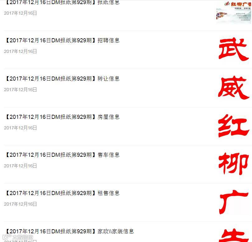 《红柳广告》十二年成功运营,现已成为发行数量最多,发行范围最广(凉州区,古浪县,市区周边6乡镇),知名度传阅率最高,平均价格最低,信息量最大的免费赠阅报纸。我们的合作客户:国美、苏宁电器、移动、联通、电信、银行地产、珠宝等众多商家。报纸+网站+微信多媒体整合传播,效果更好。发布或查找更多信息请关注红柳广告微信公众号“武威同城生活” 咨询请加微信18993530099