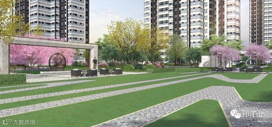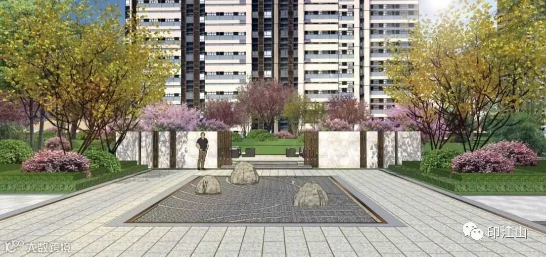 迎宾水景、山水庭院、花林曲径、观景平台、特色景墙、枫香小径,让公区承载部分 “家”的功能,延伸生活的品质,美好的场景能够在印江山的公共空间里自然而生。夫妻、老人可以一起漫步林间,享受最纯正的自然乐趣。