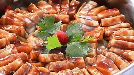 把肉菜、配菜、酱、醋、葱、辣、姜、蒜等百味佐料,一起入锅,盖上盖,大火到小火,一焖到底。