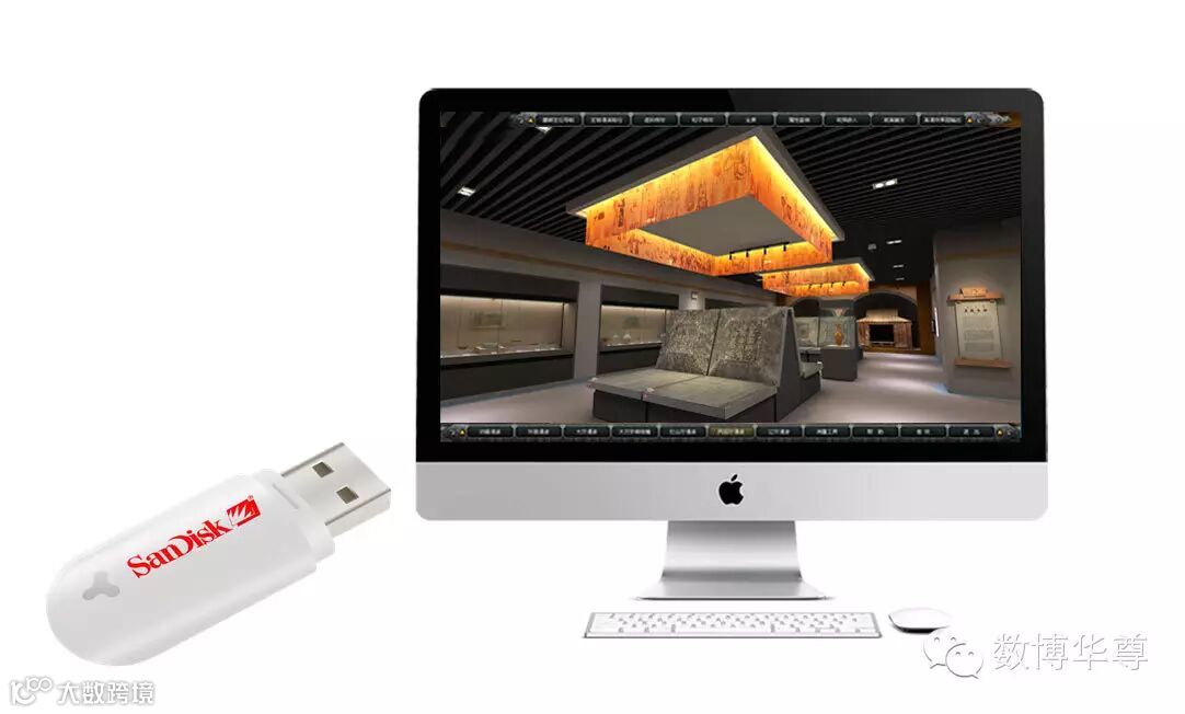 U盘博物馆是利用计算机三维建模技术及虚拟现实技术将现有博物馆按照1:1比例模拟再现,生成可随身携带的U盘博物馆,即可用于对外学术交流,也可作为令人印象深刻的虚拟名片使用,还便于说明展览展示内容。