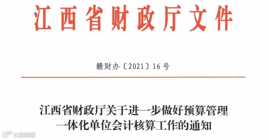 关于《江西省财政厅关于进一步做好预算管理一体化单位会计核算工作的通知》的告知书