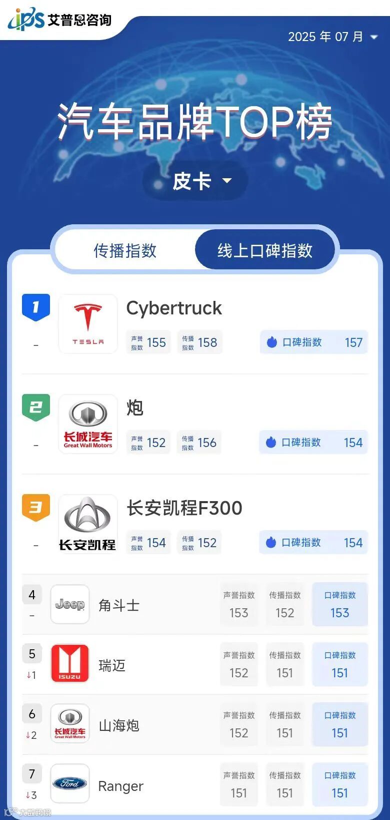 皮卡线上口碑指数TOP10
