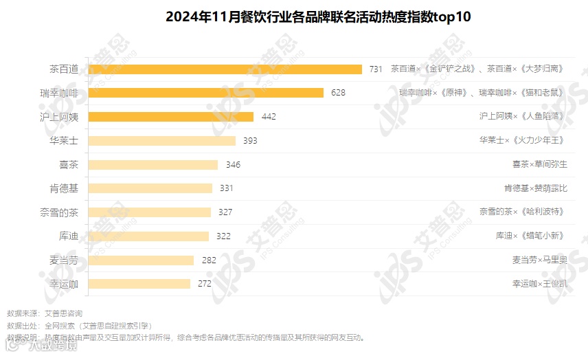 图2.2024年11月餐饮品牌联名活动热度指数top10