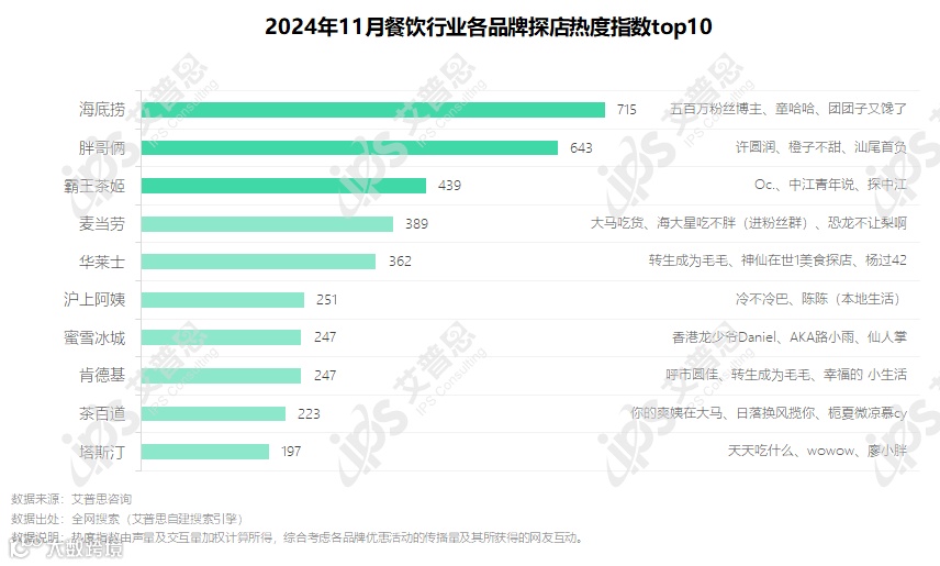 图3.2024年11月餐饮行业各品牌探店热度指数top10