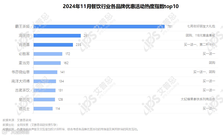 图1.2024年11月餐饮品牌优惠活动热度指数top10