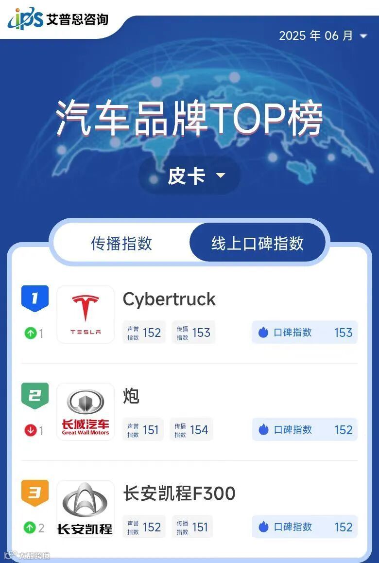 皮卡线上口碑指数TOP10