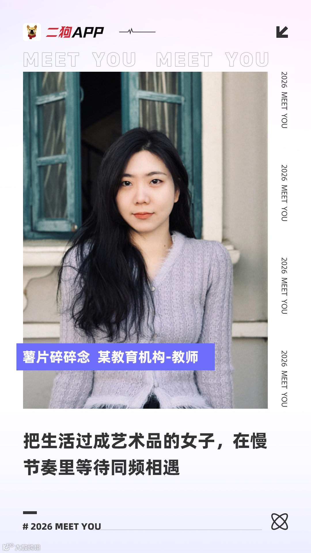 93年,教培美术老师,性格真诚随和,喜欢倾听与分享日常点滴。平时喜欢手工创作、看综艺和慢跑,比较喜欢慢节奏生活。有耐心、责任感强,期待遇见同频的你。