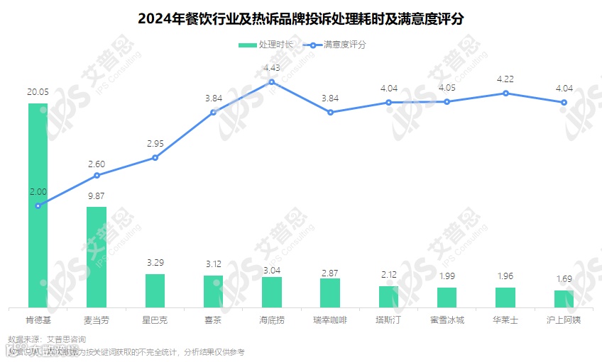◆ 处理满意度:肯德基、麦当劳处理耗时长、满意度评分低