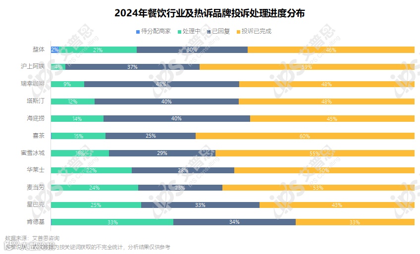 图9:2024年餐饮行业及热诉品牌投诉处理进度分布