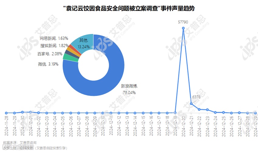 该事件于12月20日到达声量顶峰(57,790条),约78%的声量来自新浪微博,微信、百家号、搜狐新闻、网易新闻等主流站点相关信息也较多。