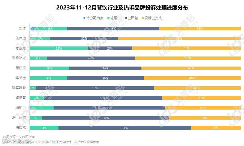 图8:2023年11-12月餐饮行业及热诉品牌投诉处理进度分布