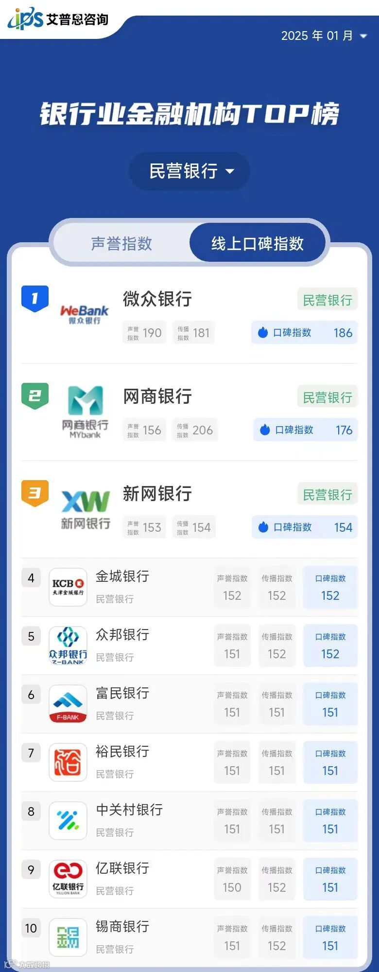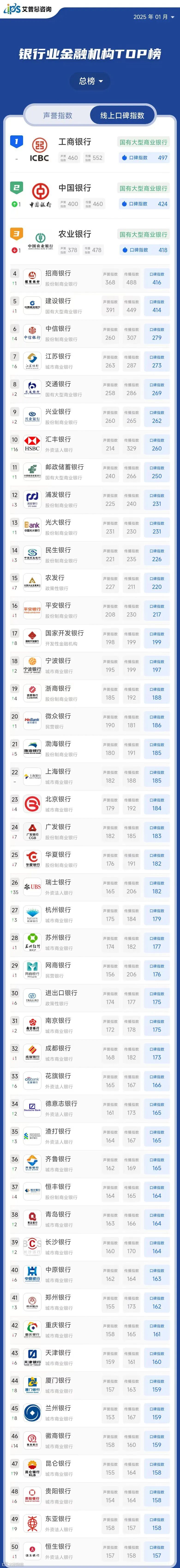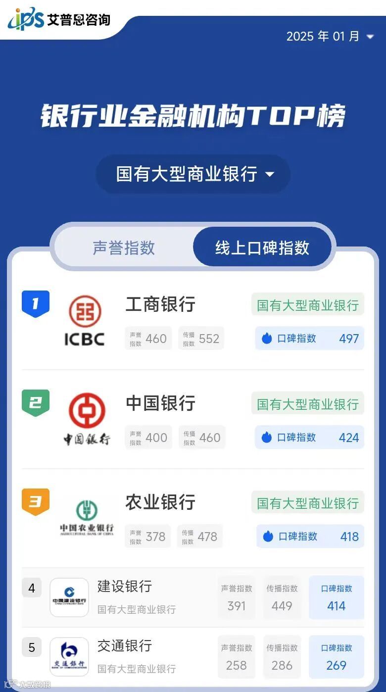 艾普思指数 | 年榜:2024年中国银行业金融机构线上口碑指数TOP50
