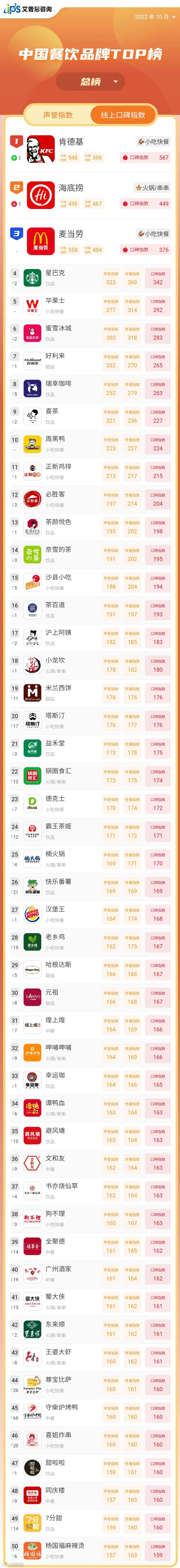 继《中国房地产品牌线上口碑指数排行榜》之后,我们发布了原创指数“艾普思品牌线上口碑指数”的又一应用榜单——《中国餐饮品牌线上口碑指数排行榜》。疫情常态化背景下,消费者外出就餐意愿的降低以及禁止堂食、暂时停业等防控措施使我国餐饮业发展受到较大冲击,餐饮企业普遍面临客流量少、翻台率低、房租压力大等多重困境。榜单旨在依托互联网文本大数据分析技术,助力餐饮企业在后疫情时代精准洞察品牌线上口碑表现,加强消费者聆听,有针对性地实施产品及品牌策略,增强抗风险能力,促进品牌持续健康发展。