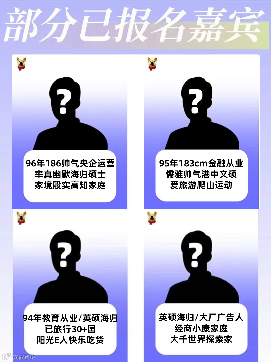 注:活动人数成行后,根据已报名情况可适当放宽年龄要求,若用户①②③④符合至少2项要求,男生年龄可放宽2~3岁,女生可放宽1岁。