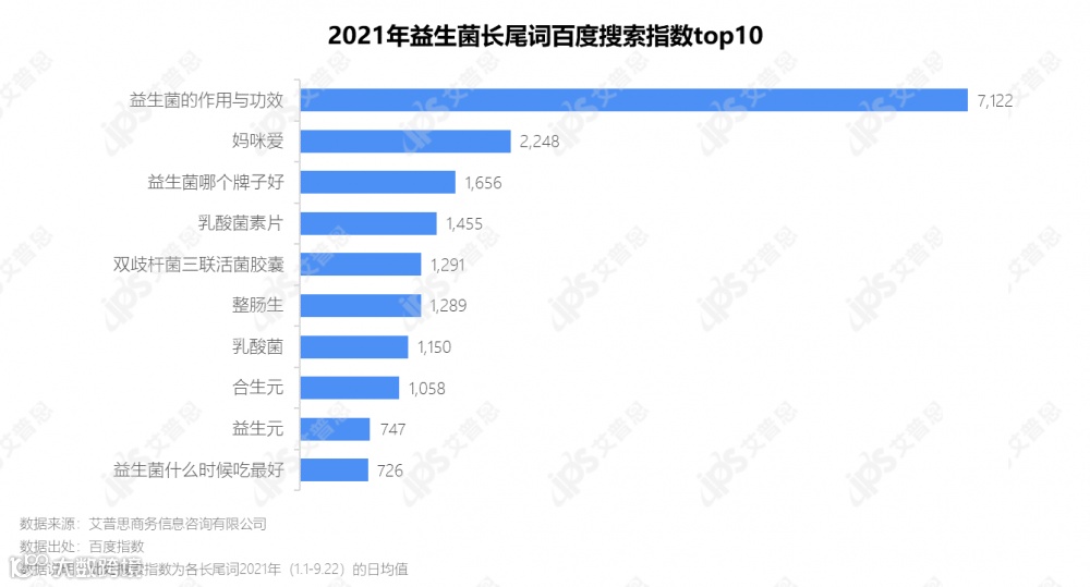 2021年搜索热度排名前十的益生菌长尾词显示,消费者搜索最多的是益生菌的作用与功效,对益生菌的品牌和最佳服用时间也较为关注,可见在当前鱼龙混杂的益生菌市场生态中,消费者在是否选择购买益生菌和选择什么品牌方面表现得较为谨慎,商家需更加注重行业口碑和品牌口碑的建设。