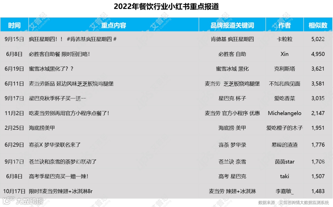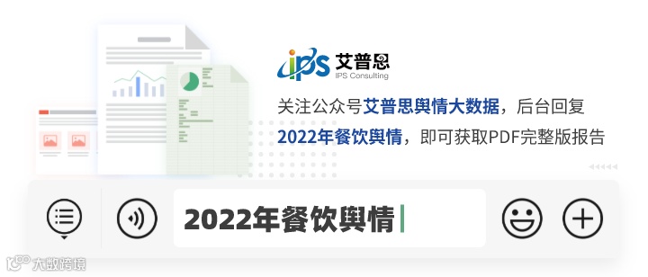 餐饮行业舆情2022年1-11月月报及年报均已发布,全部报告可在艾普思咨询官网资讯中心(www.ipscg.com, 点击下方“阅读原文”前往)或在公众号“艾普思舆情大数据”#餐饮舆情 标签下查看。