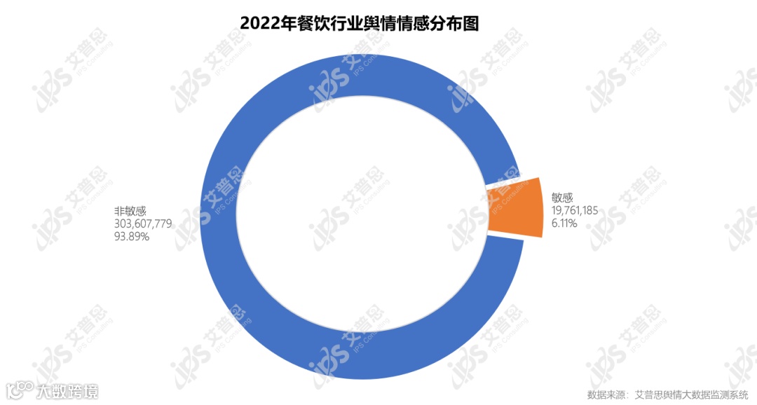 2022年,系统监测到与餐饮行业高度相关的敏感舆情声量19,761,185篇次,敏感率6.11%,涉及话题“#海底捞2021年亏损41.6亿元#”、“海底捞2021年关闭276家餐厅#”、“#星巴克门店因咖啡粉过期被罚#”等。