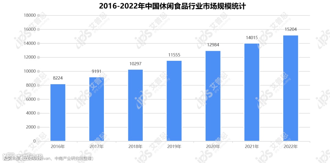 据中商产业研究院《年度总结:2021年中国休闲食品市场回顾及2022年发展趋势预测分析》报告,随着居民可支配收入的增长及消费观念的转变,健康安全、方便快捷的休闲食品受到普遍青睐,整体行业呈现上升发展趋势,预计在2022年可达15,204亿元。