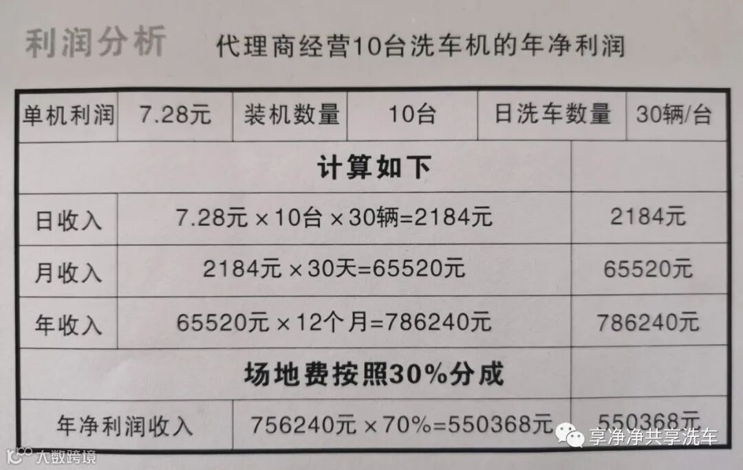 该项目具有多种盈利模式,针对集团客户,可以为一些企业专项服务,由于企业客户的用车量大,而且洗车频率高,即使收费略低,单网点日均利润也在五六百元左右。