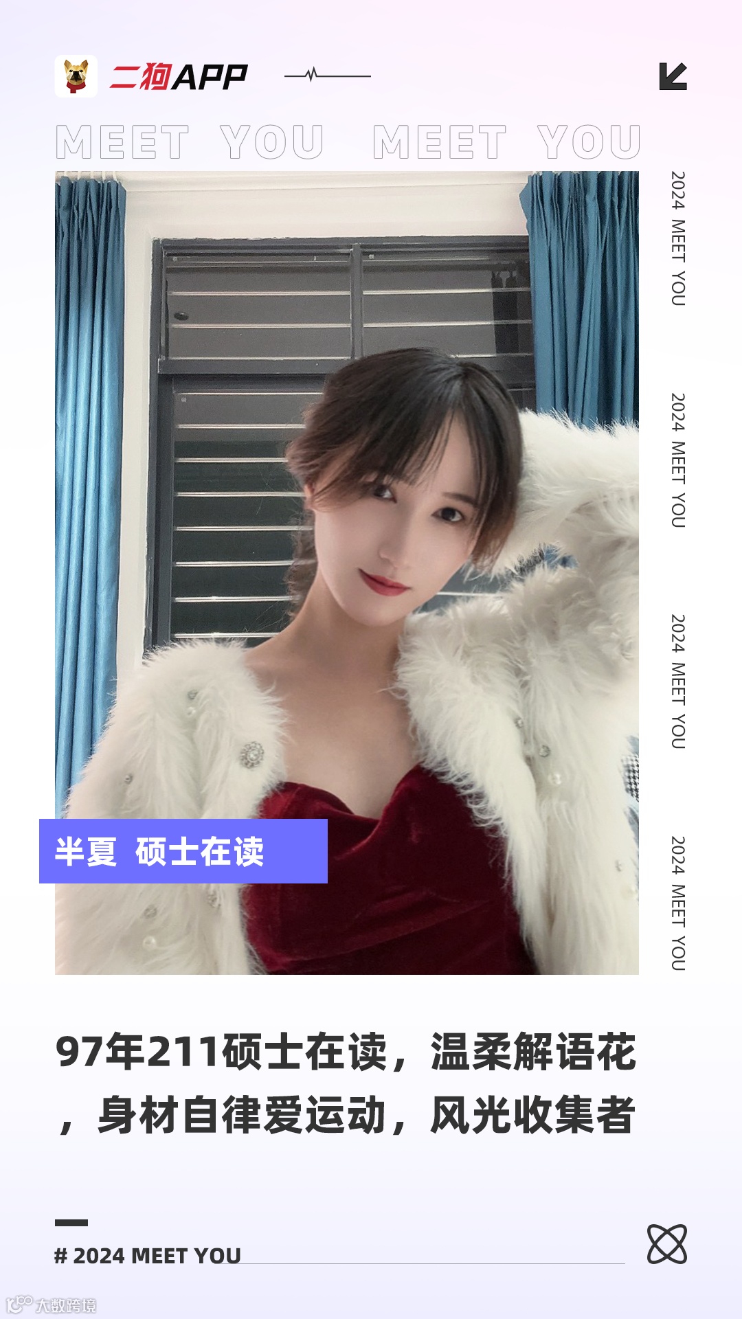 性格:性格温柔,会换位思考,能提供情绪价值,好沟通,外向是个话痨。