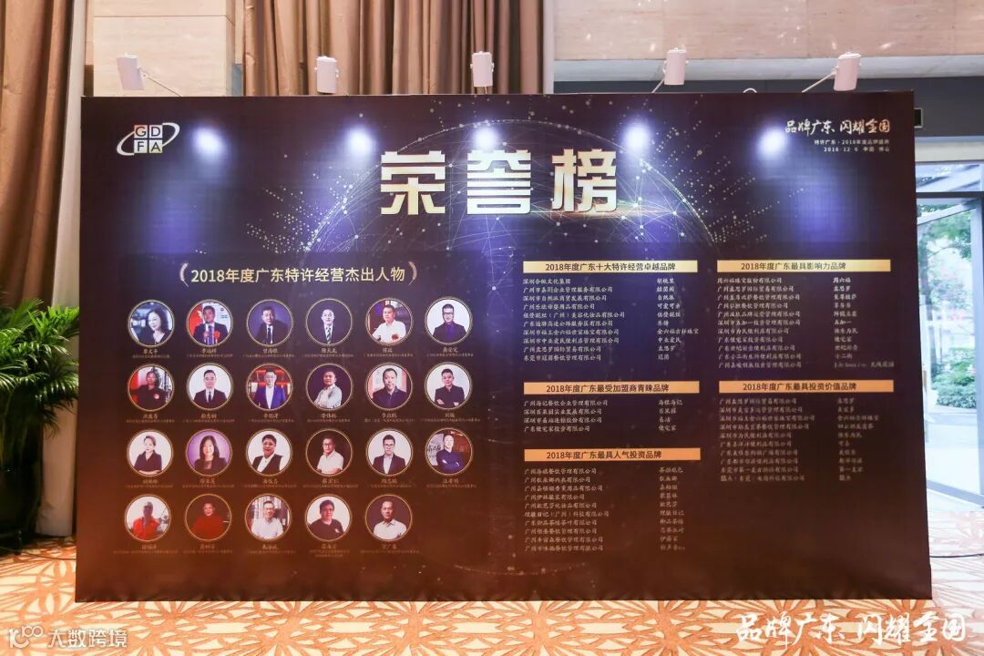 “品牌广东·闪耀全国”特许广东·2018年度品牌盛典,隆重揭晓2018年度广东特许经营杰出人物、2018年度广东十大特许经营卓越品牌、2018年度广东最具影响力品牌、2018年度广东最受加盟商青睐品牌、2018年度广东最具投资价值品牌、2018年度广东最具人气投资品牌等系列奖项。