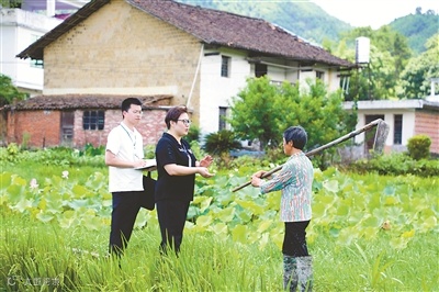 江西省兴国县纪委监委通过基层小微权力“监督一点通”平台,对民生领域信息进行查询、比对、分析,开展精准监督。图为该县纪检监察干部收到预警后向群众核实了解相关情况。
