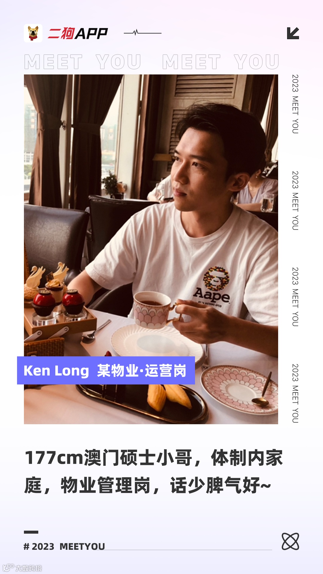广东人,澳门硕士毕业,目前在公司担任运营岗,性格平易近人,不易生气,比较慢热,对陌生人话不多,但熟络后无话不说。