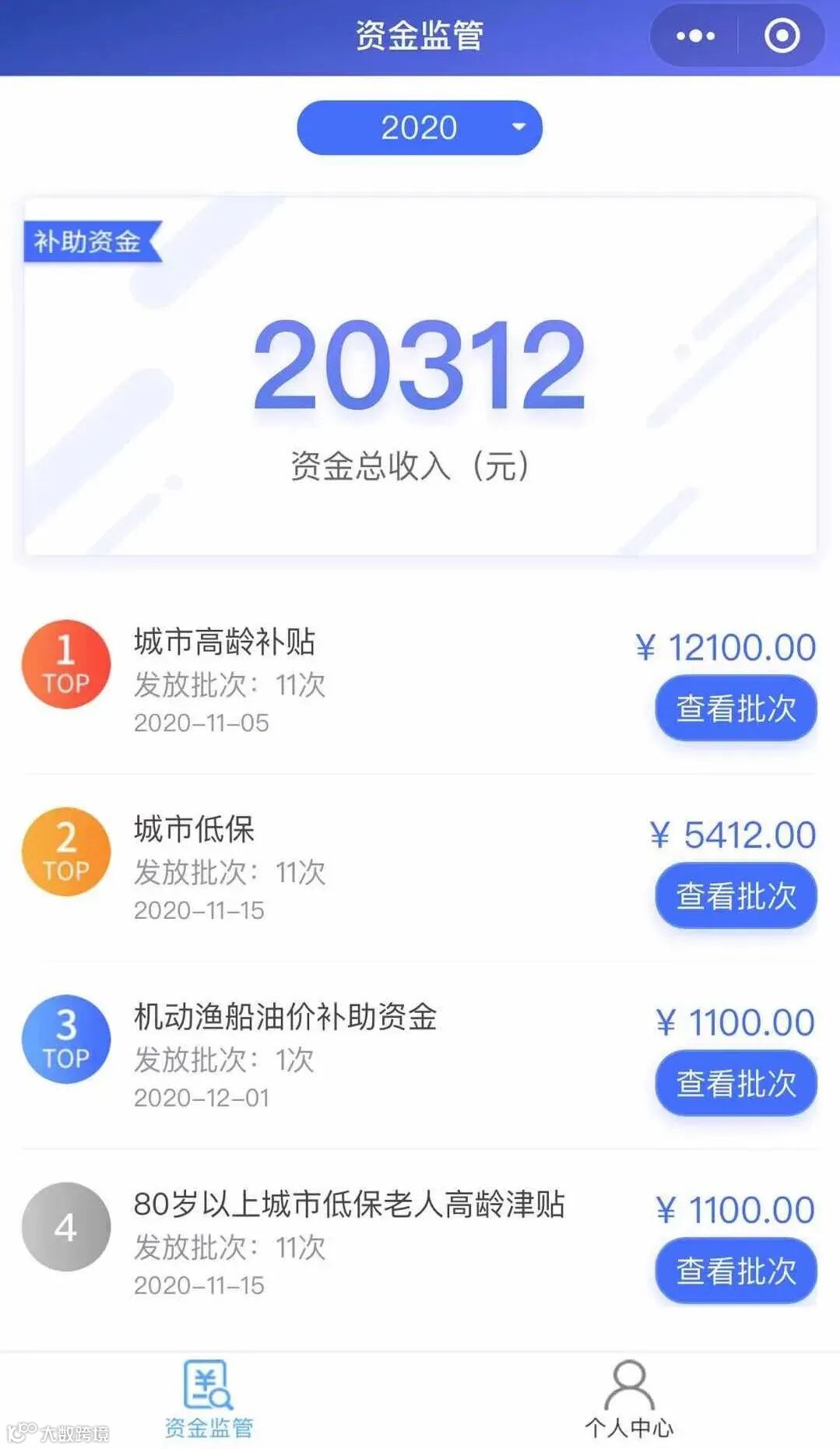 群众通过小程序查询资金发放信息,了解资金动向,对违规违纪资金进行举报反馈。