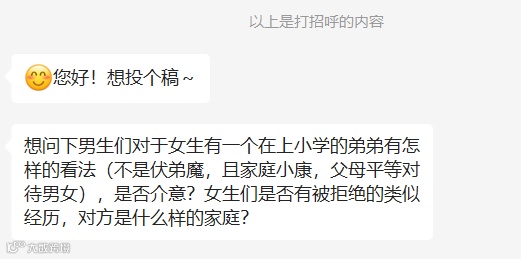 今日话题:这次投稿的女生的想问问大家对于家里有弟弟的女生的看法,你是否因为这个原因被拒绝呢?或者拒绝过别人呢?