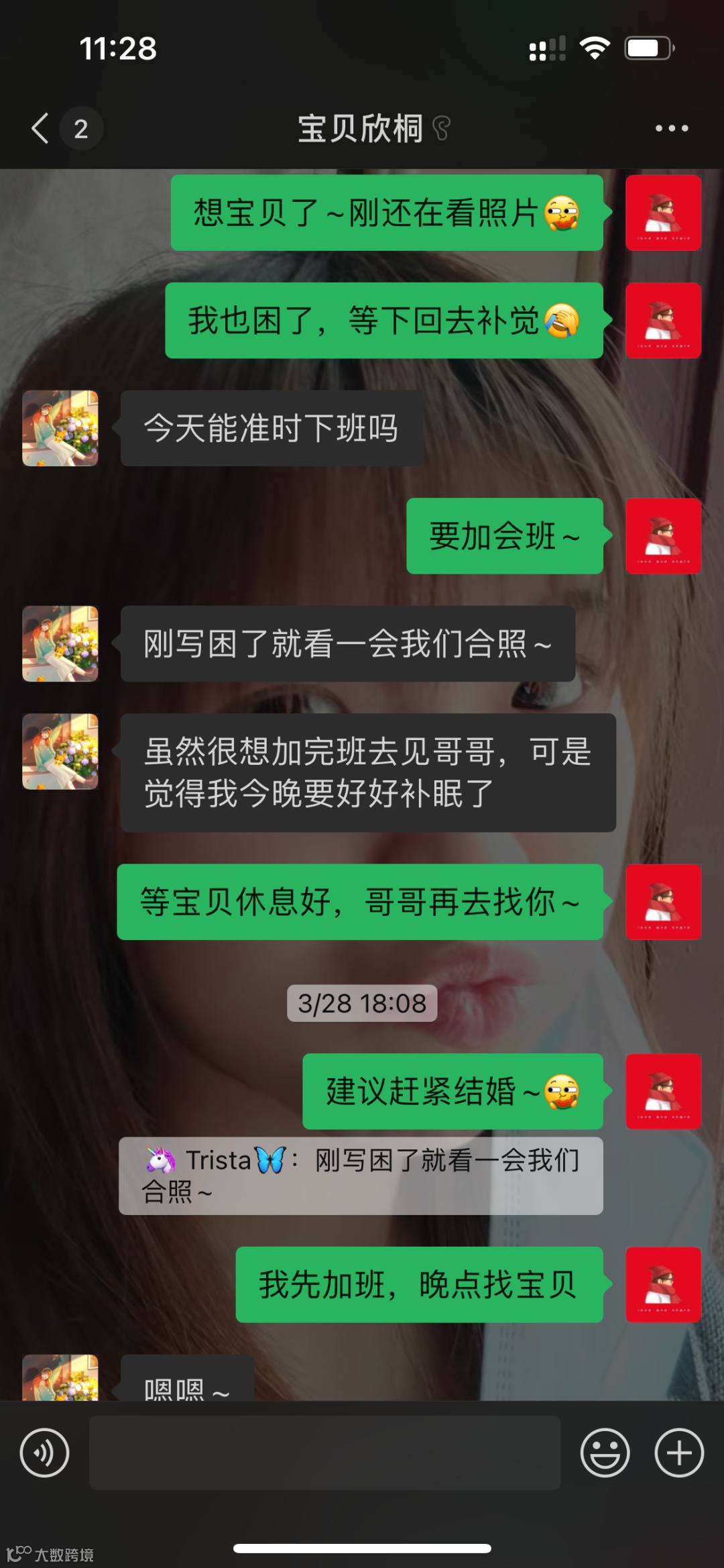 还有就是我们有讨论过关于感情经营的问题,我们都认为美满的感情是需要双方用心经营,而非确立了关系或者结了婚就万事大吉。能遇到一个愿意一起去经验感情的男生,真的很幸运。