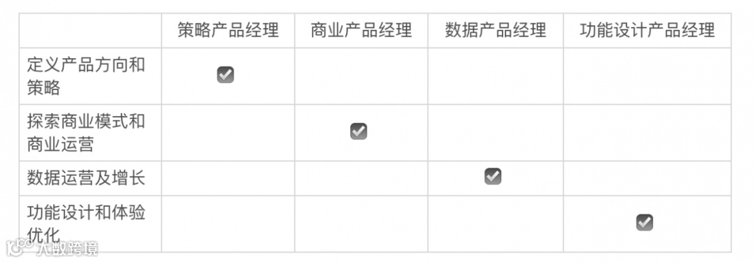 根据工作内容偏向,我们可以把产品经理划分为以下不同的类型。选择产品经理时可以根据业务需要来选择合适的产品经理。