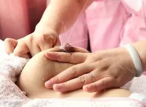 1、把双手放在腋下,沿着乳房外围作圆形按摩。双手从乳房下面分别向左右两方往上提拉,直到锁骨的位置。把手放在乳晕上方,往上作螺旋状按摩。每个动作重复8-10次,紧实胸部肌肉,加强支撑力。
