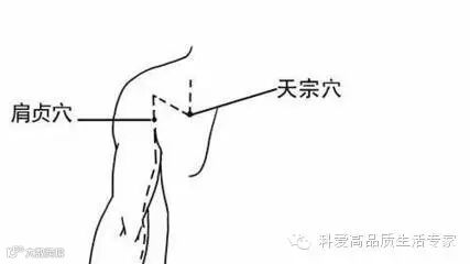 肩贞——正坐垂肩位,在肩关节后下方,当上臂内收时,当腋后纹头直上一寸处取穴。