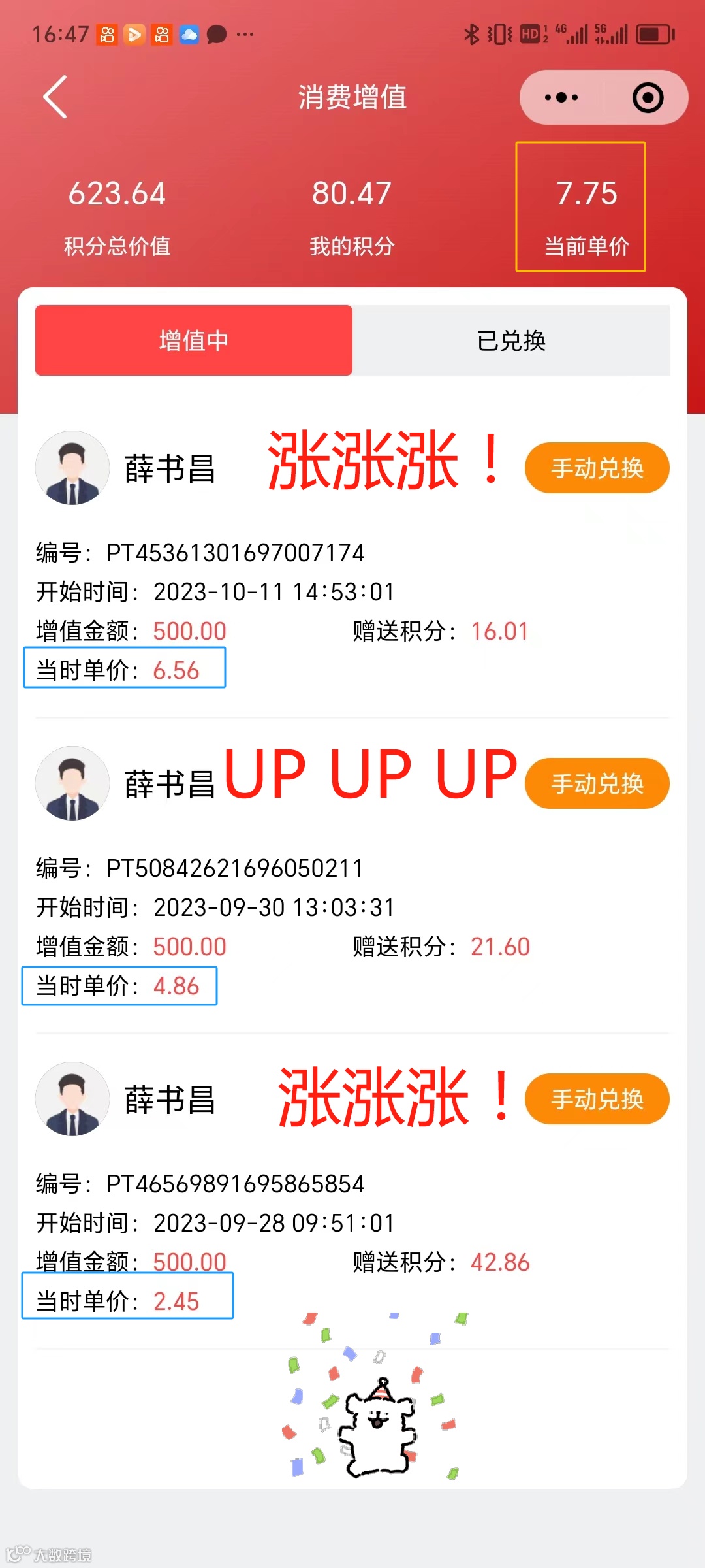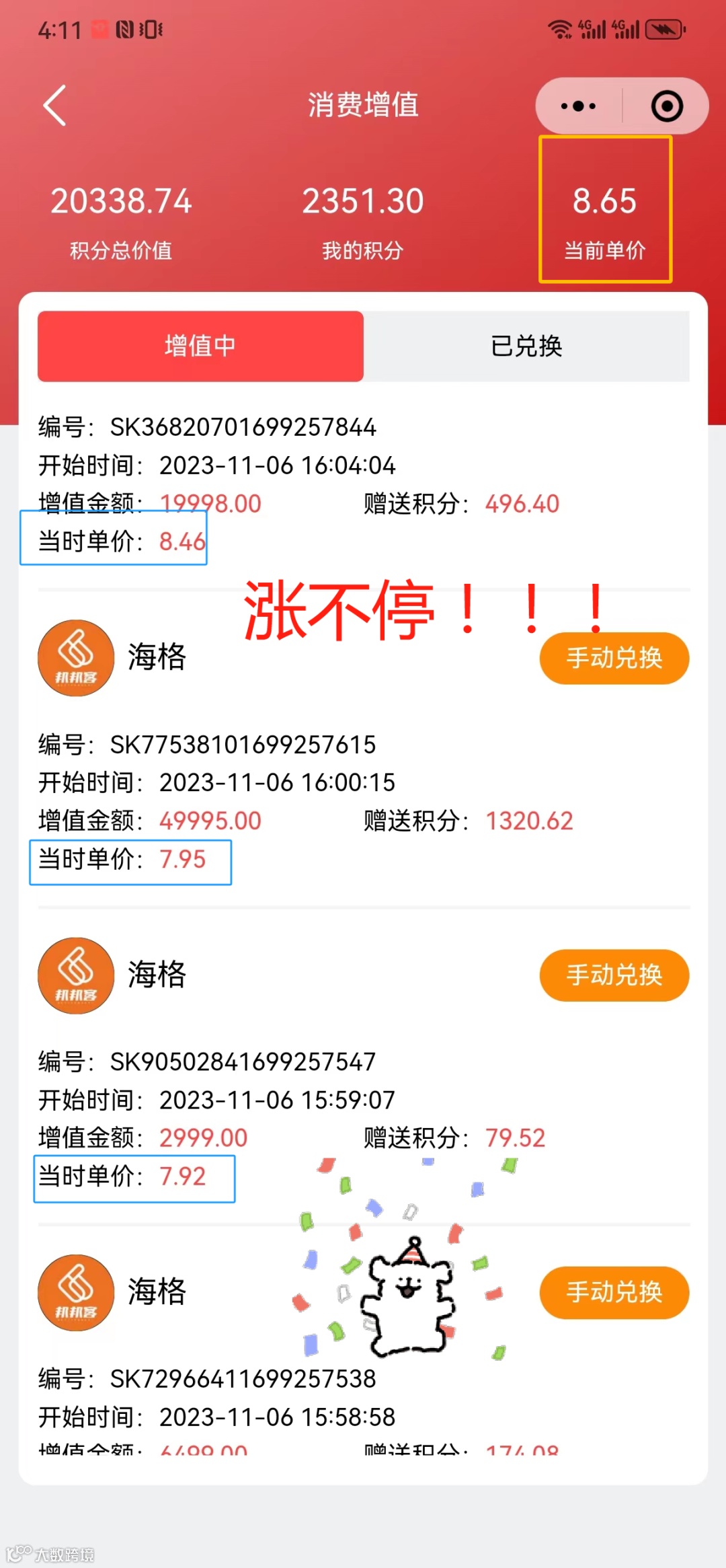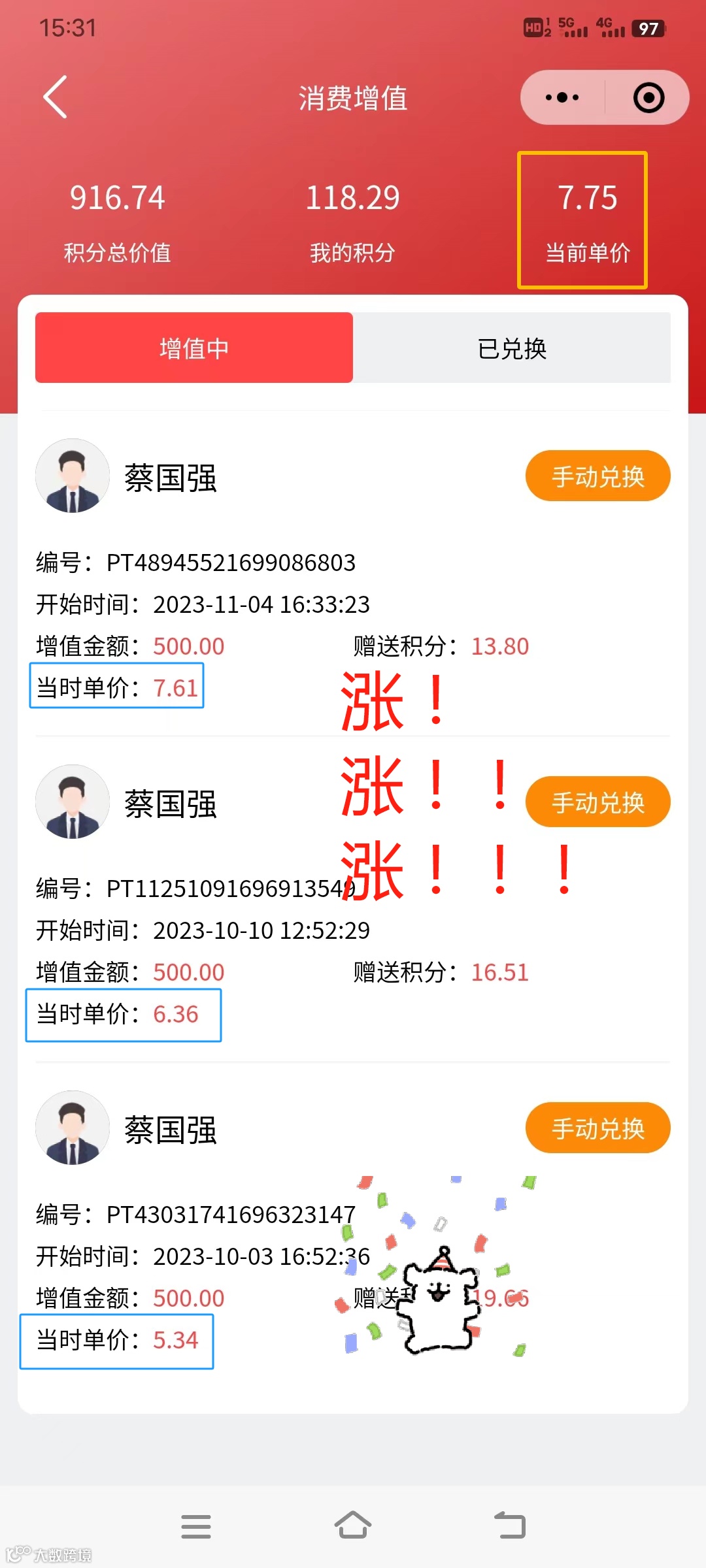 4,单笔消费增值最高为2.5倍,系统自动交易,20%返回兑换池,其他80%秒到秒提无阻碍。