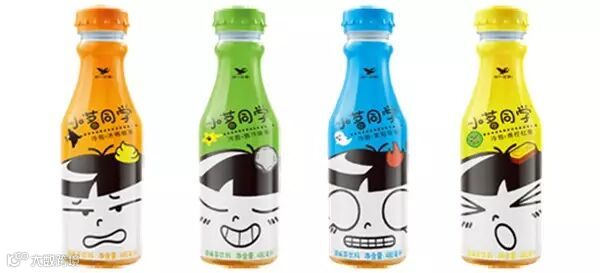 小茗同学可能是唯一一款有年龄的饮品,外包装的设计功不可没,因定位于95后学生群体,它选用了清亮鲜艳的颜色,并塑造了一个欢脱,蠢萌的小明同学,像酷儿,张君雅小妹妹这些形象一样,鲜明而便于记忆。
