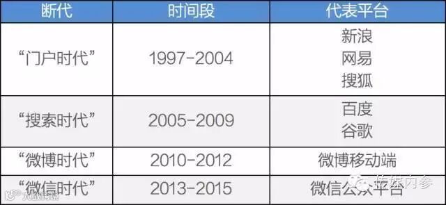 一场历史性的逆转出现了。到2015年下半年,中国互联网历史上曾经掌握过流量分配权的平台(三大门户、百度、QQ、微信、微博,加上今日头条的头条号),已经全部将权力下放至“自媒体”。