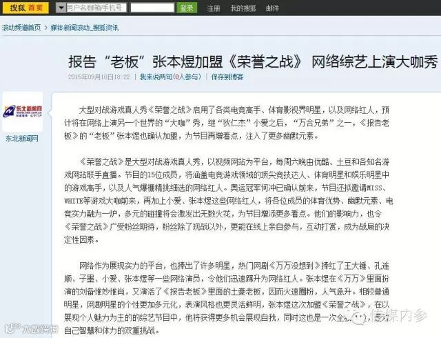 传媒界权威人物,中国人民大学新闻与社会发展研究中心喻国明教授,专门撰文论述,《“互联网+”时代视频市场已进入全要素全环节的竞争阶段》对《荣誉之战》的创新价值进行了肯定,称它不仅仅是节目模式的创新,更是商业模式的颠覆。