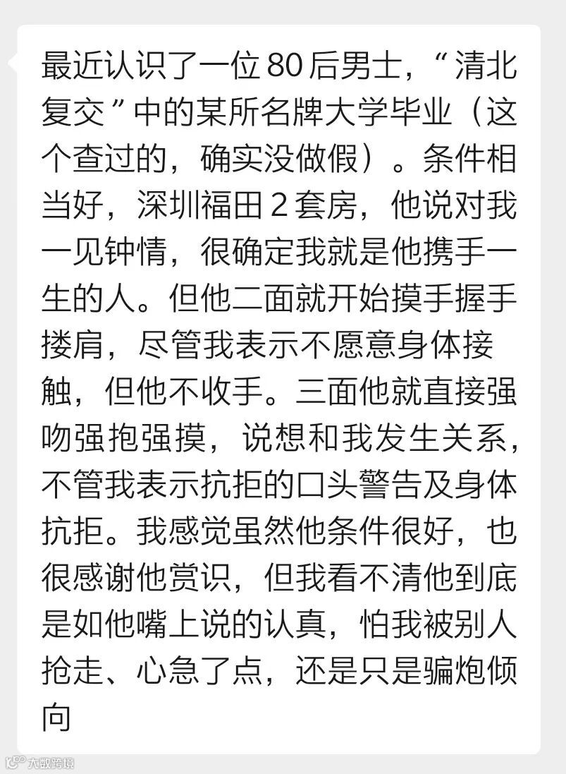 生投稿说,她最近认识了一位80后男生,对方条件很好,