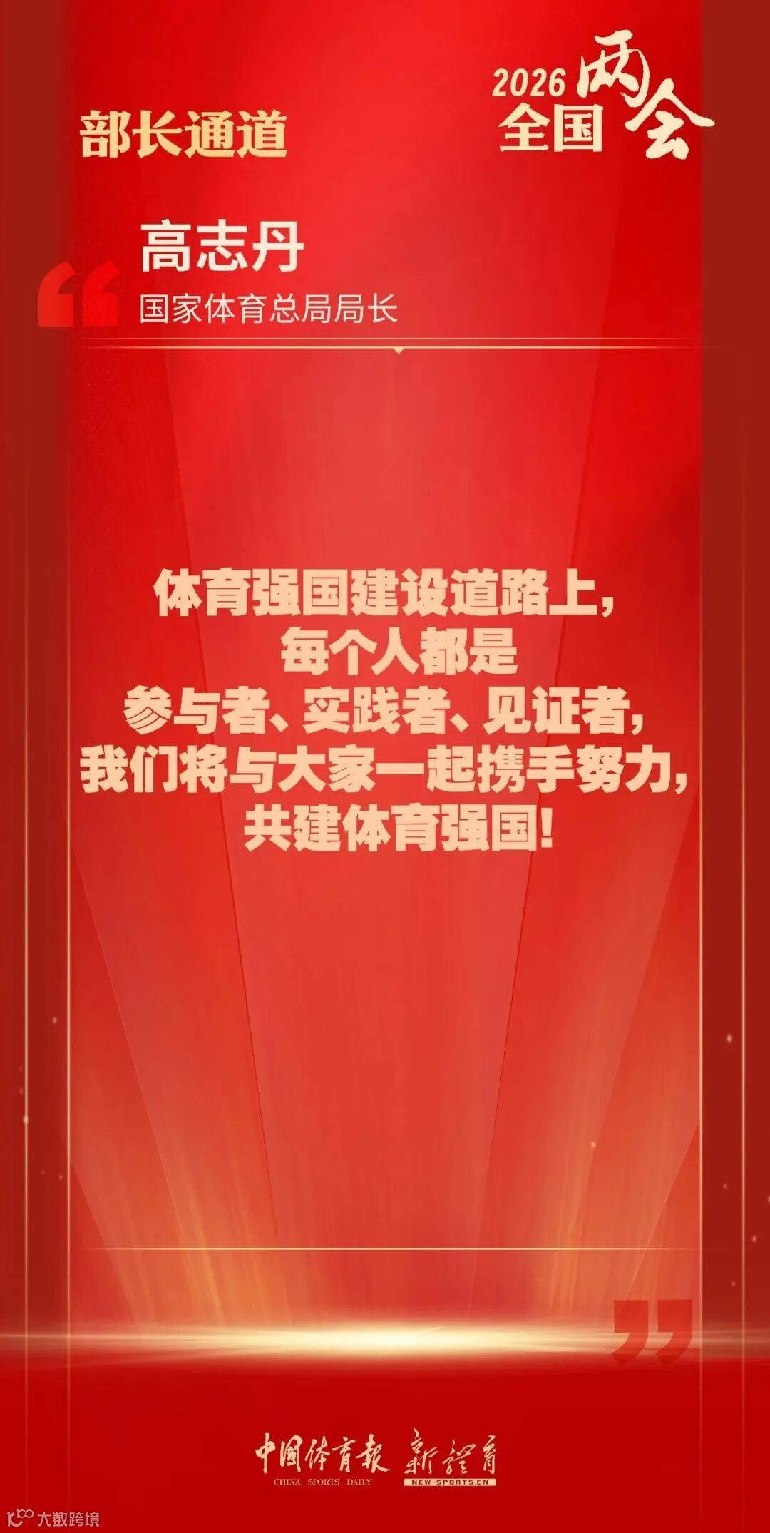 导读:体育强国建设道路上,每个人都是参与者、实践者、见证者,我们将与大家一起携手努力,共建体育强国!