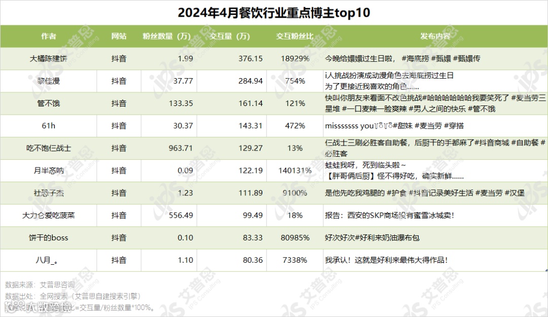 图4.2024年4月餐饮行业重点博主top10