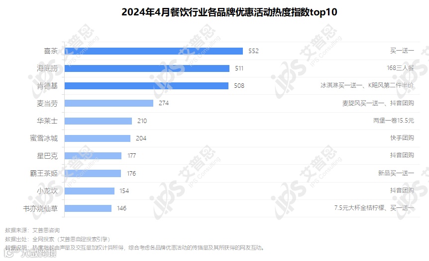 图1.2024年4月餐饮品牌优惠活动热度指数top10