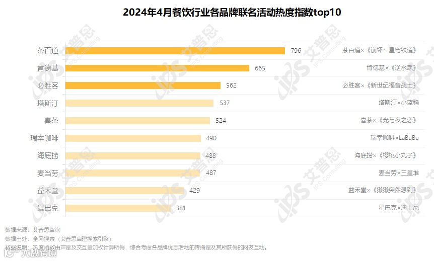 图2.2024年4月餐饮品牌联名活动热度指数top10