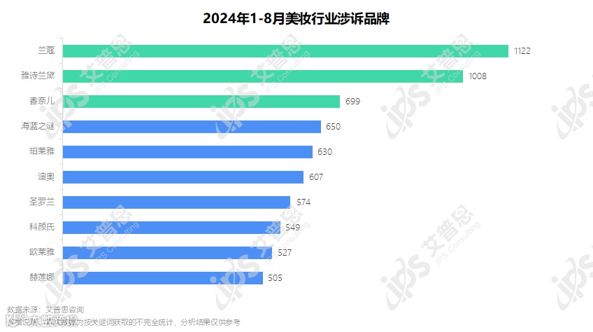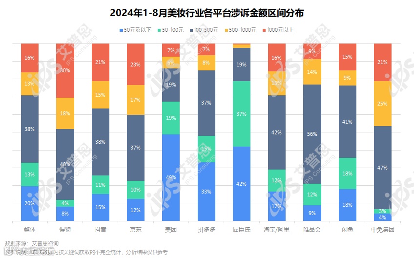 2024年1-8月美妆行业投诉对象分析